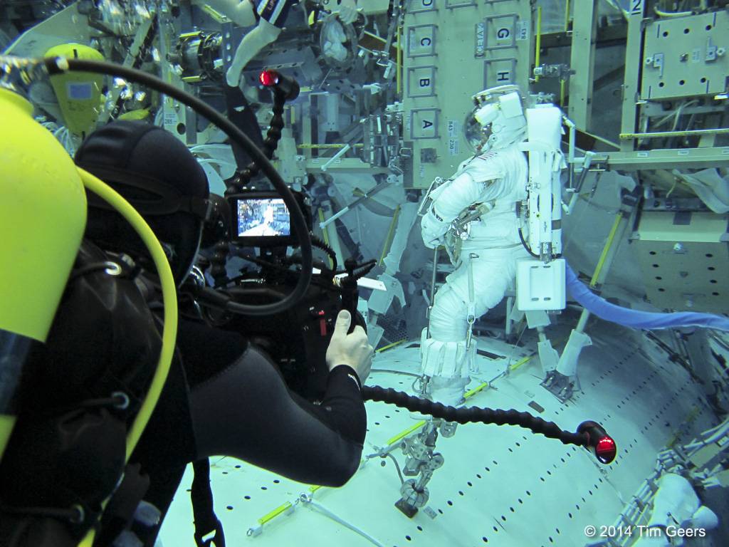 Camerman Tim, Editor Tim and Jonathan have just returned from a week filming at the Neutral Buoyancy Lab in Houston. This facility, part of the Johnson Space Center, is a huge indoor pool containing a complete replica of the International Space Station. It is used for simulation of micro-gravity. If you haven't seen our webisode about the NBL, you can check it out and be an instant expert!