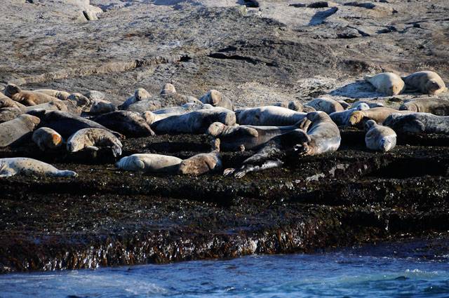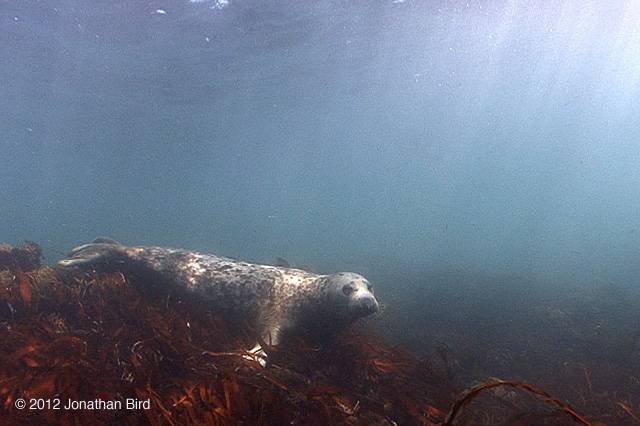 Many years ago, I filmed Gray seals underwater near Bar Harbor, Maine. These animals, especially the juveniles, are often quite curious of divers, and come over to investigate us if we just sit around in 15 feet of water. Unfortunately, for some reason, Gray seals no longer hang out in the same places they used to. I wanted to film them again for Blue World and I was told that they no longer live on Little Duck Island, right in the Harbor. Instead, they are way out at Mount Desert Rock, which is 26 miles offshore! You can't get there unless it's a nice calm day and you can't dive with the seals unless it's calm.