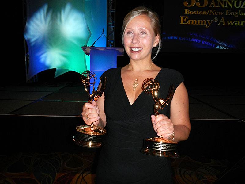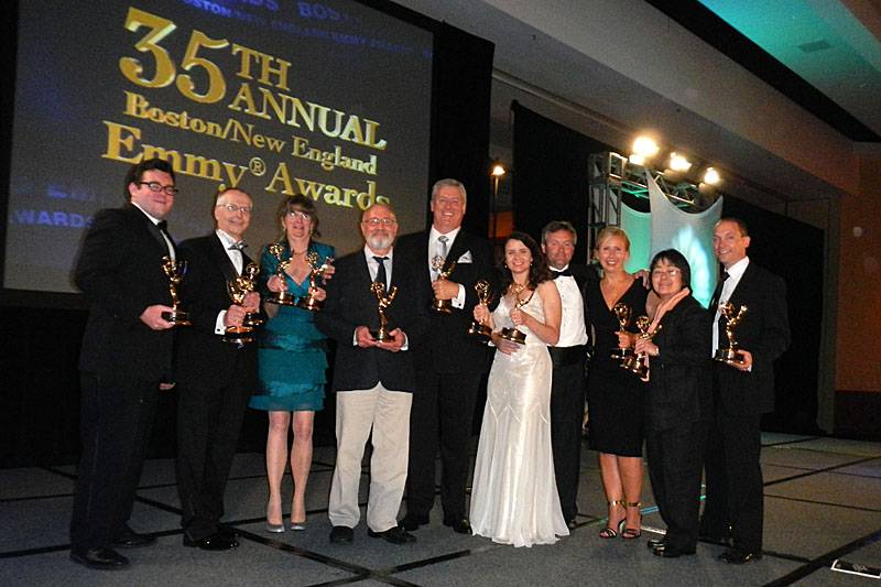 Well, this weekend was the 35th annual New England Emmy Awards, where we were nominated for SEVEN awards! It was a fun and exciting night. We shot some video that we will make into a little behind the scenes webisode shortly. We had some real nail-biter moments, but came away from the event with a very respectable FOUR emmys: Best Children's Program, Best Segment, Best Musical Score and Best Editing. This was the first time we ever won for editing! Nobody in the whole room was more excited than editor Tim who just took home an emmy one year out of school!! (I'd say that his Blue World internship worked out ok, huh?) This was also the first time Bruce won for filmscoring, although he has a pile of Emmys from other films he has scored. With these four new Emmys, Jonathan Bird's Blue World now has earned a total of eight Emmy Awards over a span of three years.